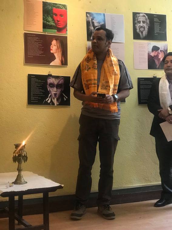 From left: Former Prime Minister of Nepal Mr. Lokendra Bahadur Chand, Mrs. Chand, Artist Sundar Jadab, Poet Tareq Samin, Poet Subbash Parajuli, and Poet Kiran Bhatia.